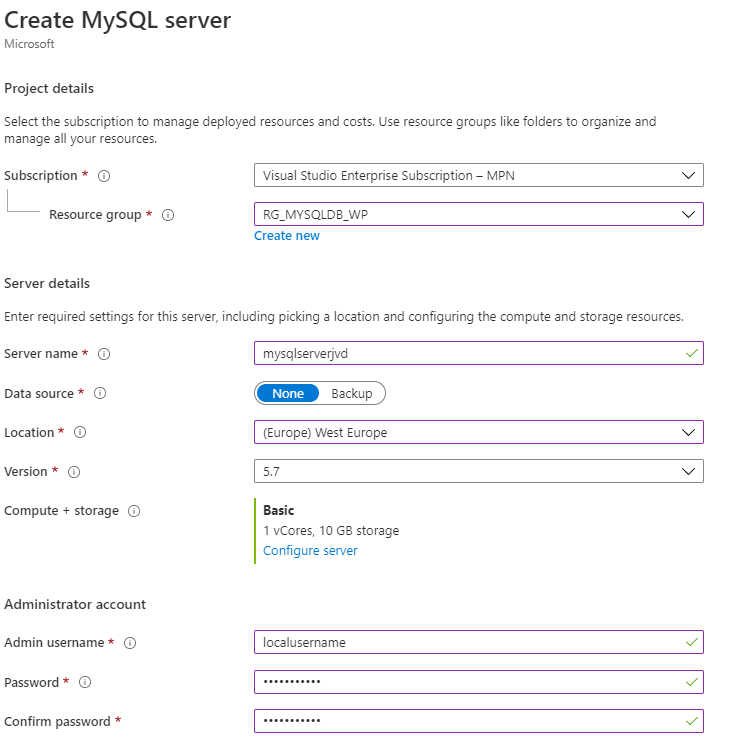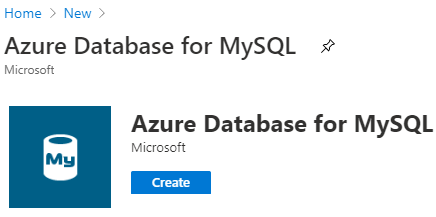 we go to the azure portal and create an new resource “Azure Database for Mysql”