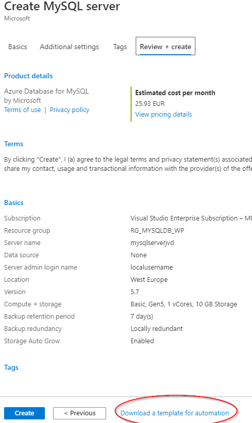 Or the lazy way by clicking in the portal, follow the wizard and download the preconfigured templates just before you click on create (what we wont do) which we can alter in DevOps.
